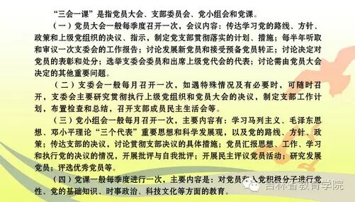 中央要求:在两学一做学习教育过程中,要以党支部为基本单位,以“三会一课”等党的组织生活为基本形式,以落实党员教育管理制度为基本依托,针对领导机关、领导班子和党员干部、普通党员的不同情况作出安排。“三会一课”是什么?