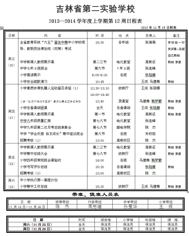 第12周日程表