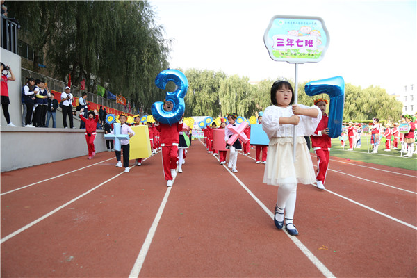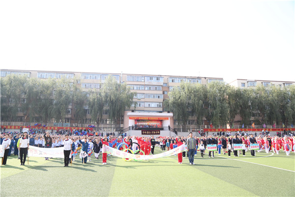 首先进行的是别具特色的运动会开幕式。参加开幕式的领导和嘉宾有:陈杰校长、王宏杰书记、遇建勋副校长、王成主任、马建梅副主任、张陆慧副主任、大队辅导员韩梦蒙老师及各年级家长代表。开幕式由王成主任主持。“红领巾社团”就是让孩子们在社团活动中学会相处,懂得关爱;学会沟通,懂得协作;学会担当,懂得感恩;学会发现,懂得超越……本次接受检阅的方队以社团形式呈现,真正体现了“社”彩缤纷,我是主角!五年组 “童眼看世界,相约中国梦”。五个班级分别展示五个大洲的特色,通过创意展现孩子眼中的世界。四年组“心怀梦想 智创未来”。各班级均以创客少年为基本设计思路,并结合本班假期社团活动主题来设计班级的检阅队伍。三年组的检阅方阵结合了假期的社团活动确定了“科学梦”的主题,分别展示了生物探奇、航空动力、人体奥秘、太空探索、农田开发、人工智能和数学乐园七个方面。二年组“经典阅读、相伴成长”,童话世界展社团风采,在假期中各个班级组建童话剧社团,让孩子们在真善美的浸润中幸福成长。一年级的主题是“向往 ”,希望一年级的小同学们向往阳光,向往幸福,向往绽放,向往未来,向往自由,向往美好,快乐成长!社团的优秀担当家长代表和学生代表高高举起自己社团的旗帜接受学校的检阅!操场一片欢腾,孩子们尽情展示自己在社团的快乐和收获!