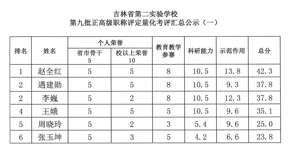 第九批正高级教师职称评审公示(一)