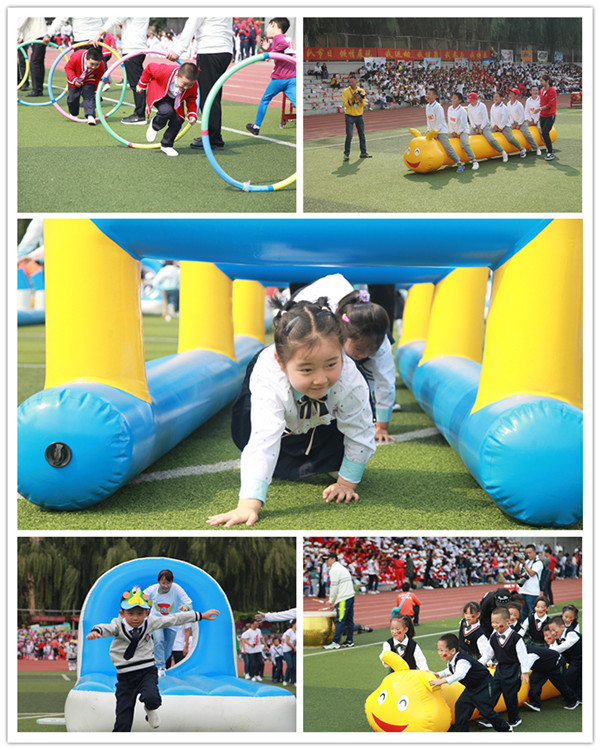 本次体育节的运动项目以竞技和全员游戏为主,运动员在比赛中注重团队合作,奋勇争先,看台上的观众们热烈加油,赛场上的健儿们努力拼搏,他们用行动诠释着公平、理解、友爱的体育精神。各年级充分利用毛毛虫、穿越火线等运动器材,游戏有趣利智,在欢声笑语中完成了比赛。一年级家长和孩子进行了多项亲子游戏,增进了父母与孩子的情感,小同学们在父母和老师的陪伴下幸福长大。