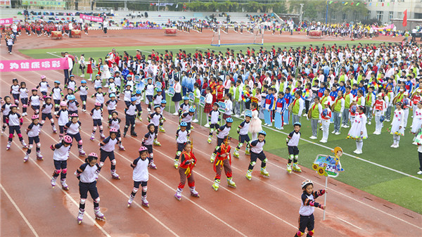 三年10班同学们组成了轮滑方队,他们脚踏“风火轮”,英姿飒爽,帅气十足!小小轮滑少年们,不怕苦、不怕累,用坚强的毅力,超越极限,挑战自我!