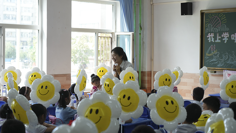 此时,同学们在操场上跟随着音乐老师们快乐地学习上学歌、跳上学操、诵上学谣。稚嫩的声音,爽朗的笑容,可爱的动作,一切都彰显着孩子们对校园生活的喜爱与向往。