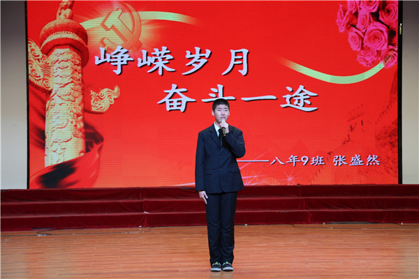 历史风云剧社的同学们用精彩的表演、犀利的对话还原了清末群情激昂的政变——《戊戌变法》,展示了同学对历史的理解与认知;诤言时政社团代表张盛然同学演讲——《峥嵘岁月 奋斗一途》,向我们讲述了采访老兵史保东的所闻所感,言说着家国情怀;舞蹈社团《红色摇滚》,孩子们用坚定的步伐、挺拔的身姿、刚劲的动作展示着青春风采。通过社团展示,同学们表达着思想、诉说着情怀、分享着成长。