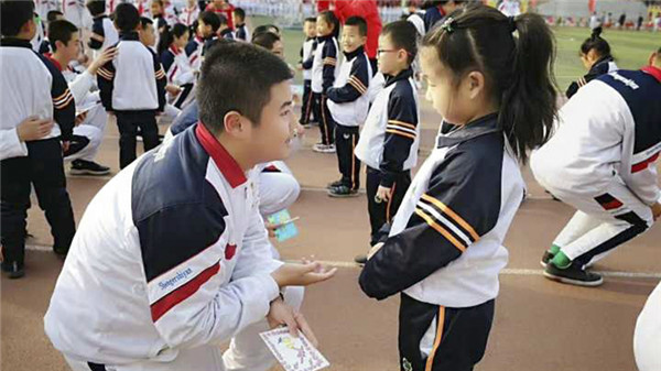 六年1班田双硕、七年2班李星皞,八年1班郭奕伯同学代表非毕业班全体同学为九年级师生送上百日祝福。一声声热情洋溢的呐喊响彻整个校园,为百日里鏖战的毕业班师生送上最真挚的祝福!