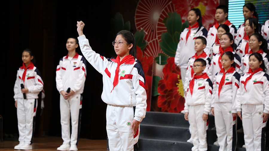 龙腾盛世,不忘来时路;高唱国歌,澎湃家国少年情。全体师生庄严肃立向国旗敬礼,激情高昂共同唱响国歌,家国情怀在歌声中回荡。